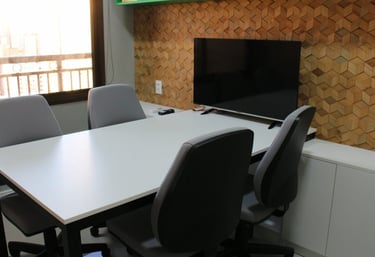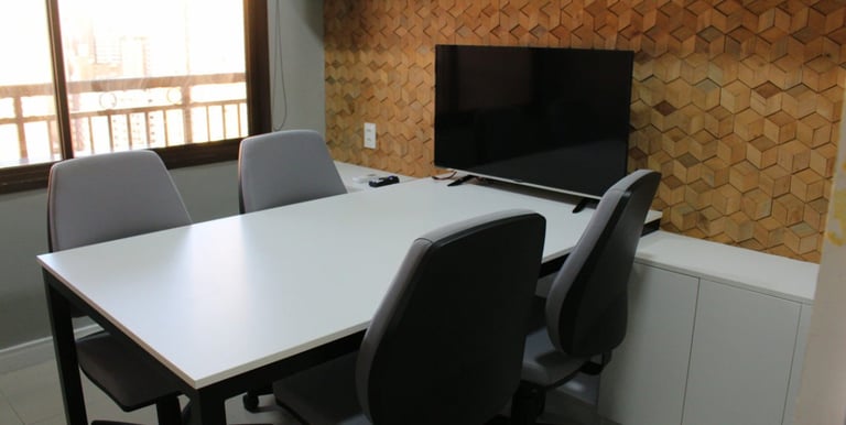 Salas de reunião modernas e equipadas, com internet rápida, climatização e ambiente profissional. O espaço ideal para receber clientes, fazer treinamentos e fechar negócios no Cocó, Fortaleza.